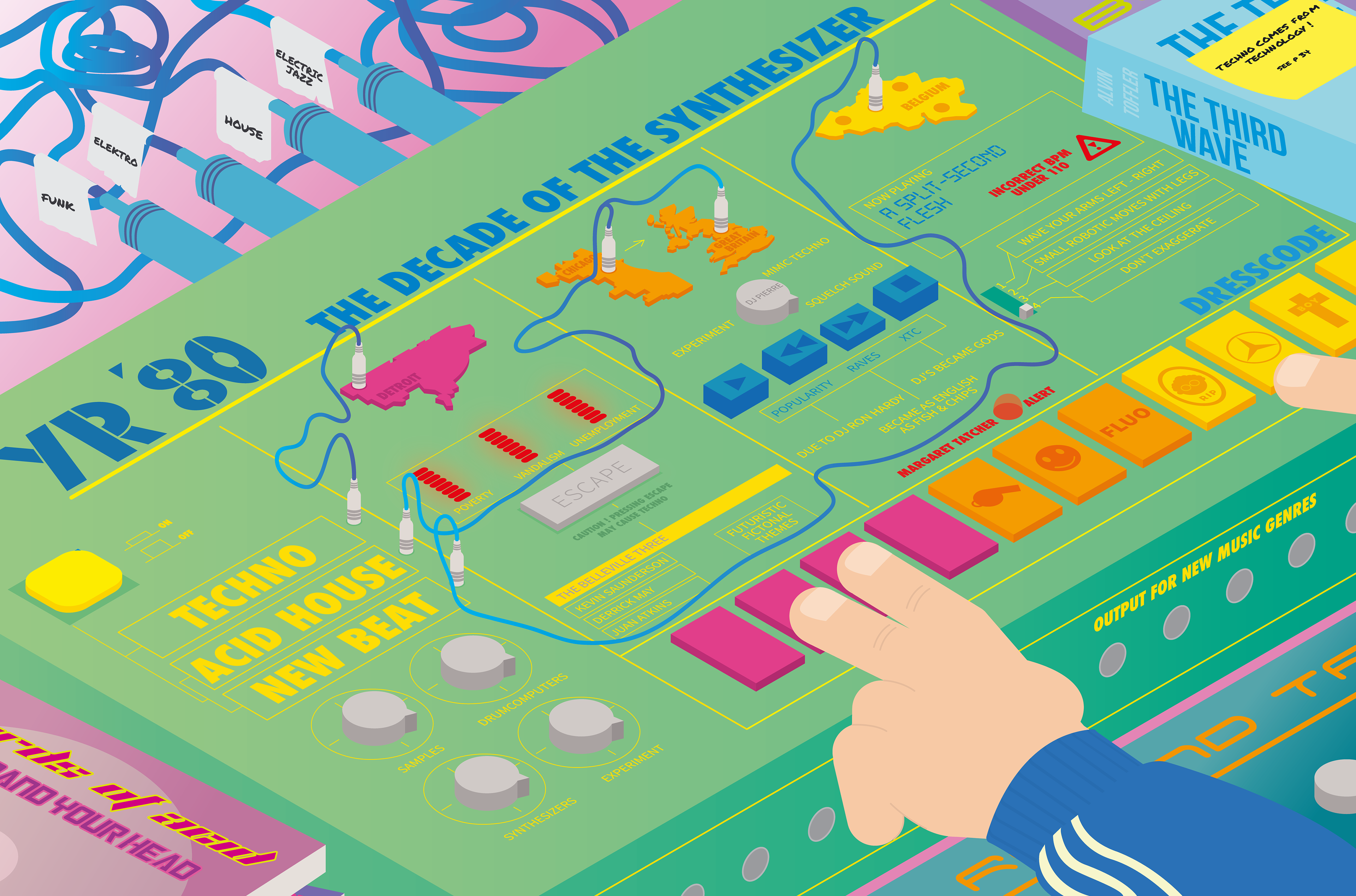 Infographic about techno, acid house and new beat